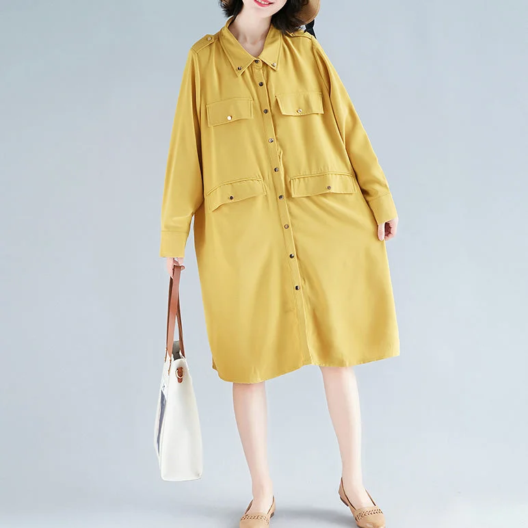 DIY yellow Cotton Wardrobes Mom Tutorials lapel collar short Dress