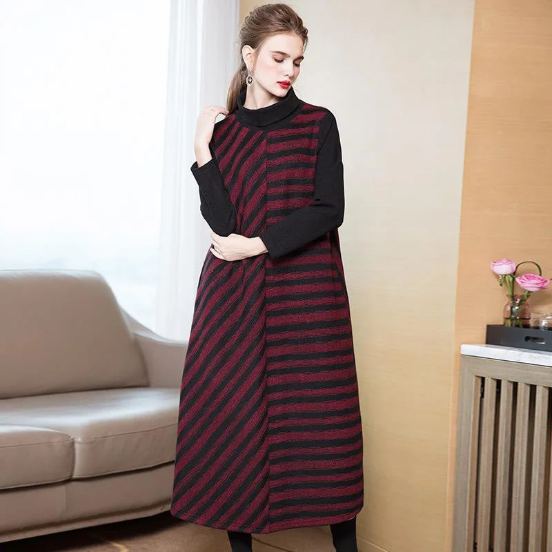 Fashion 2018 New High Neck Striped A Line Maxi Dresses For Women