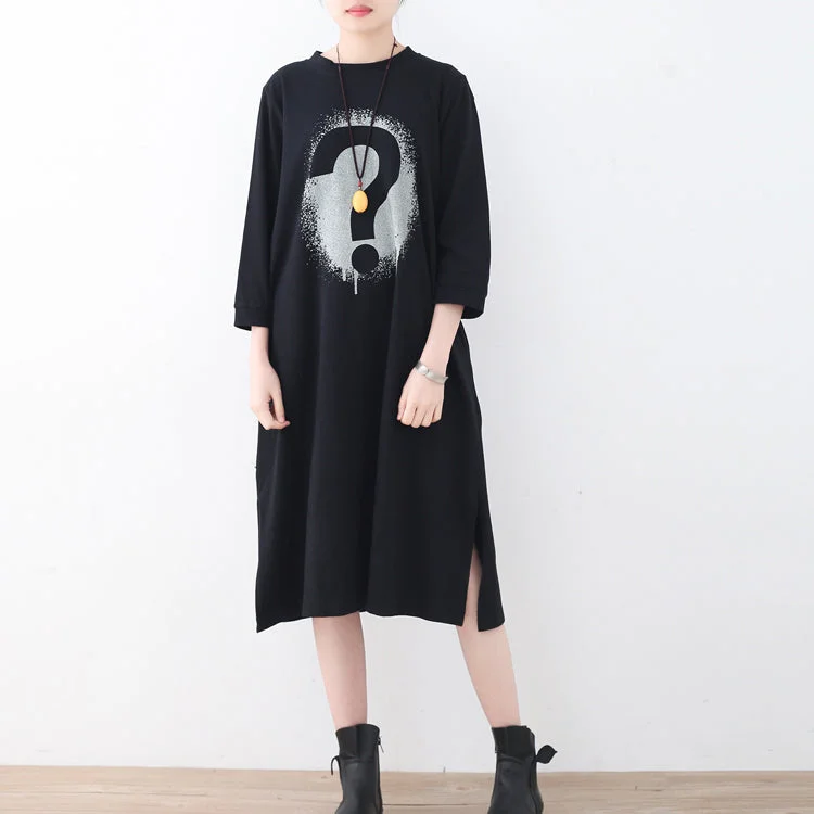 Fine black alphabet cotton caftans trendy plus size side open gown New brief caftans