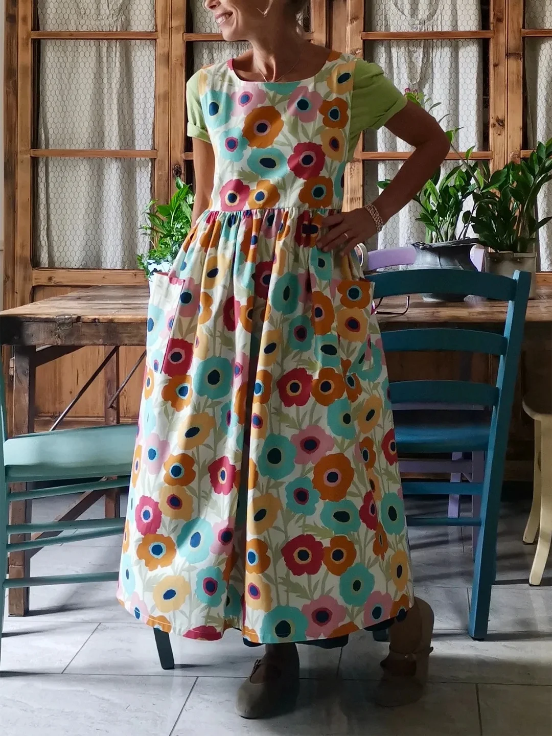 An apron for the most romantic, a real dress to wear not only at home but also in the garden, and above all outside.