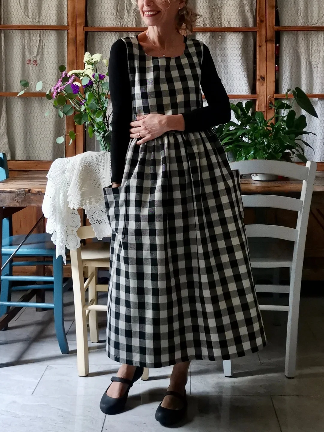 A beautiful apron for the kitchen, but not only....because it is not just an apron, it is a real dress.