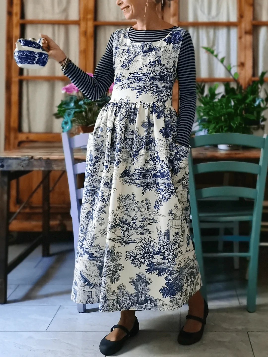 An apron that does not go unnoticed, in this beautiful country fantasy.