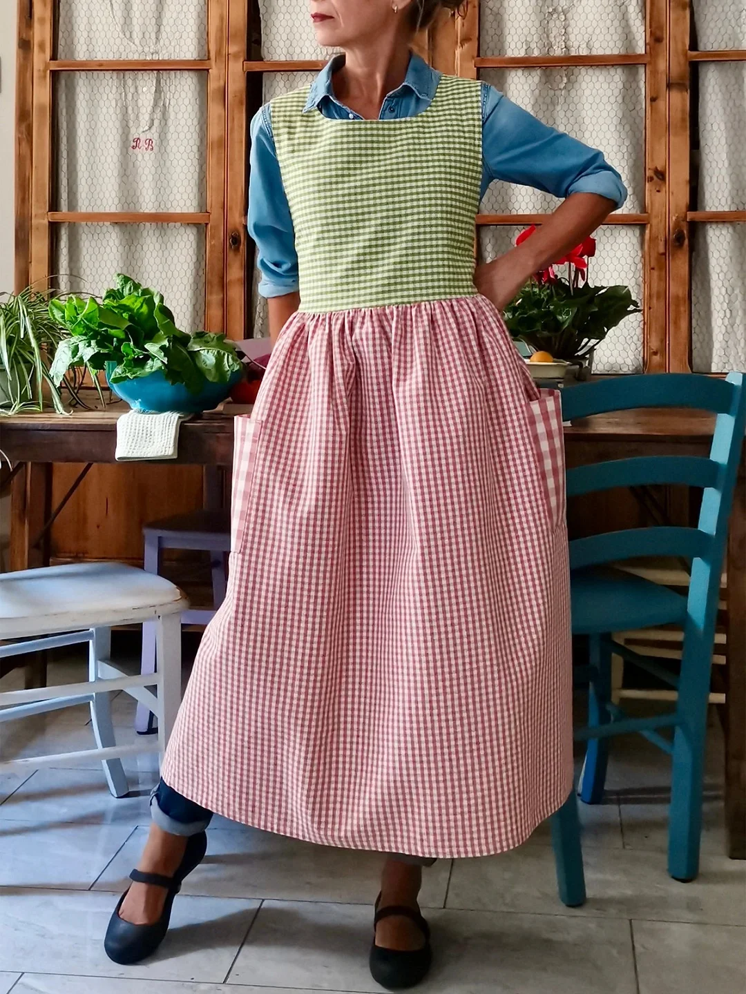 A modern yet incredibly romantic apron, beautiful for all ages. A youthful apron that plays with contrasting colors that work beautifully together.