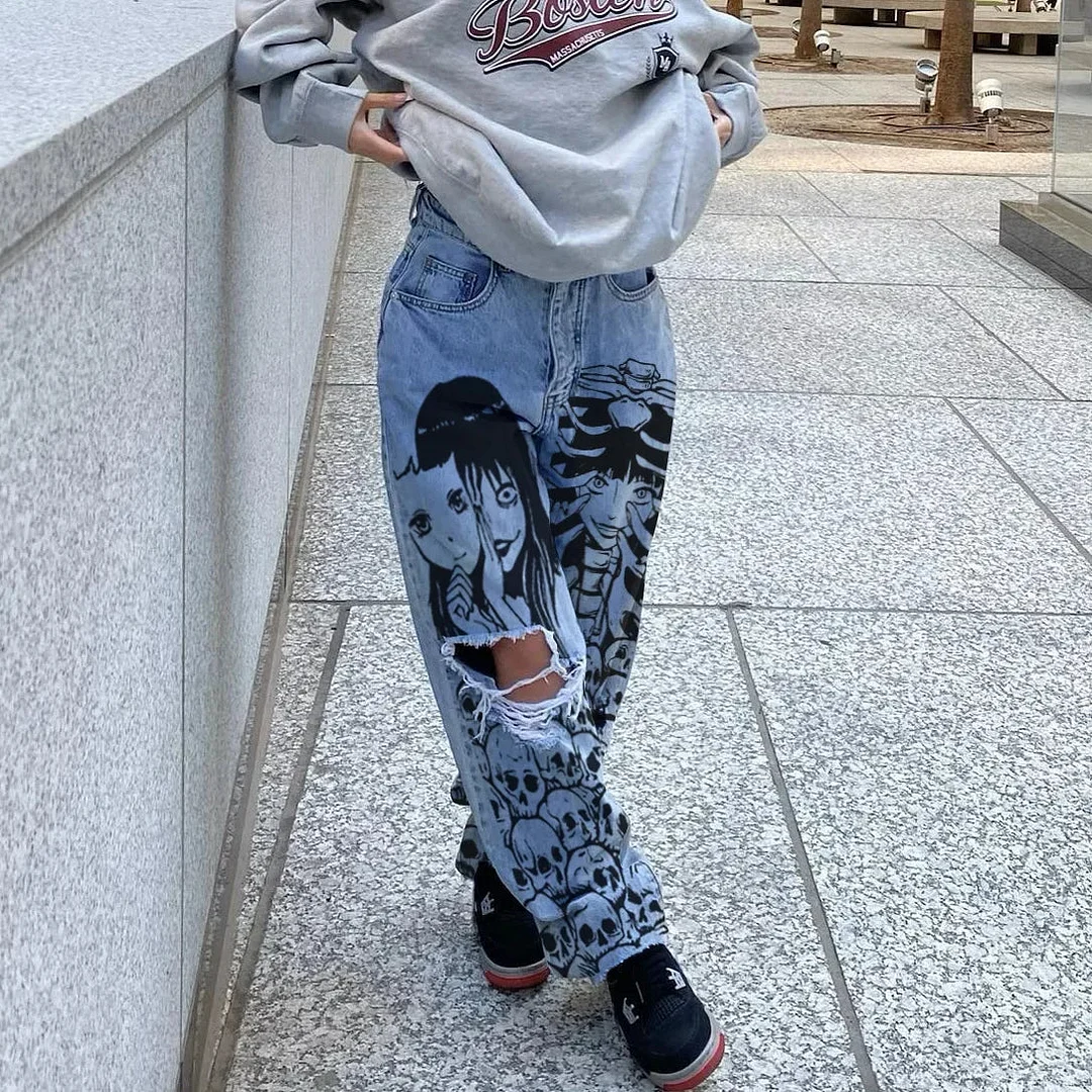 High Waist Ripped Gothic Denim Pant