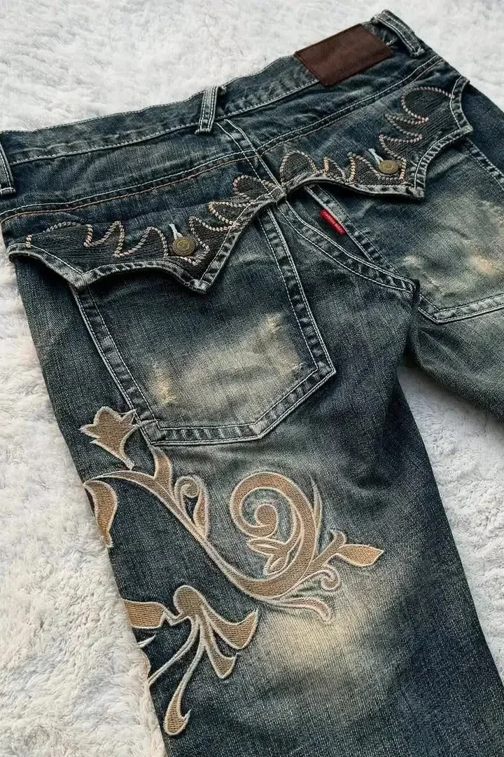Retro Y2K Boho Tribal Embroidered Denim Pants