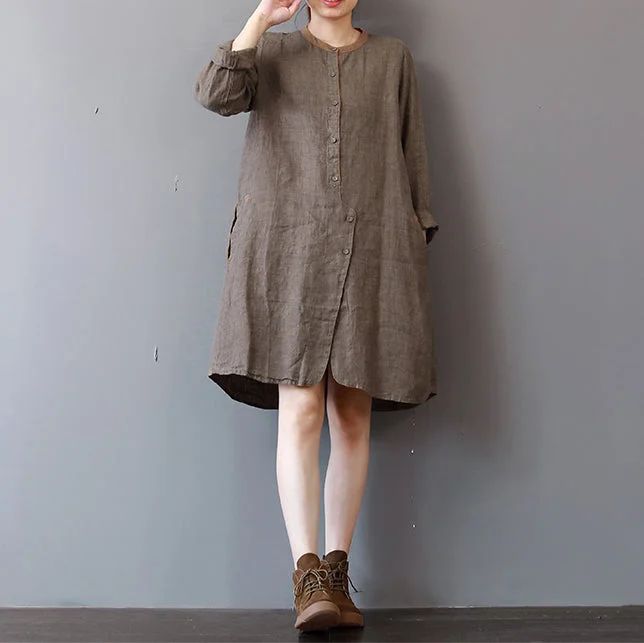 stylish chocolate linen shirt dress plus size traveling clothing long sleeve casual o neck dresses