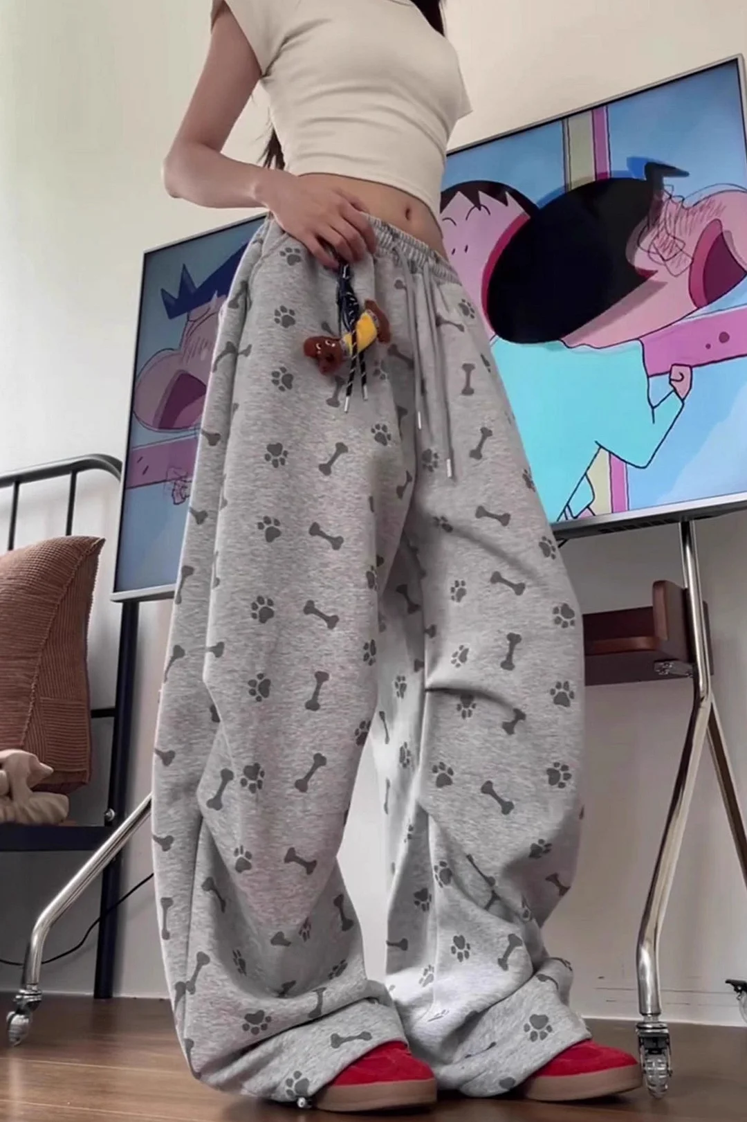 Vintage Bone Charm Wide-Leg Loose Fit Pants