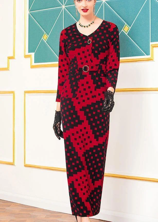 Vivid red plaid cotton quilting clothes o neck Plus Size v neck Dresses