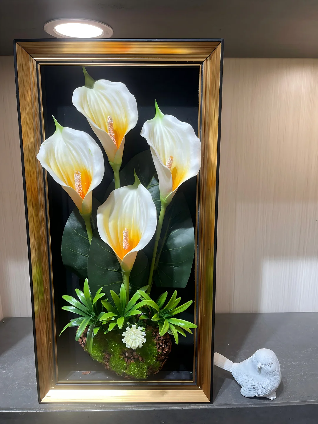 White Calla Lily Arrangement in Gold Framed Display(Size:9 in*18 in)
