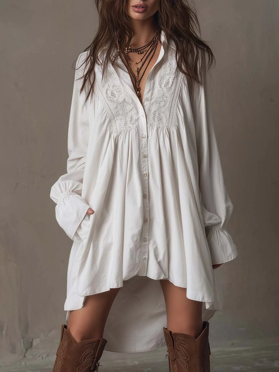 White Lace Irregular Hem Long-sleeved Mini Dress