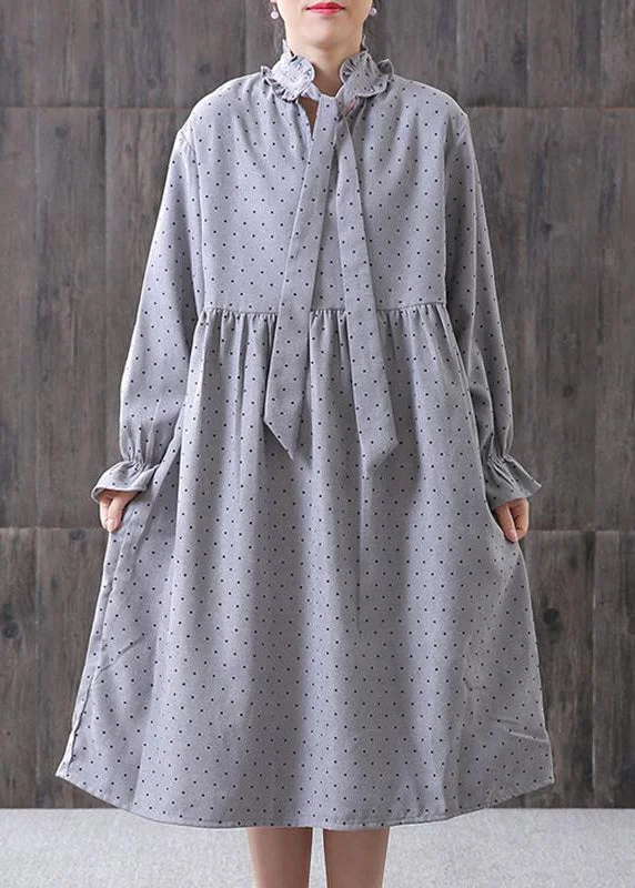 Women Spring Small Dot Petal Sleeve Literary Dress