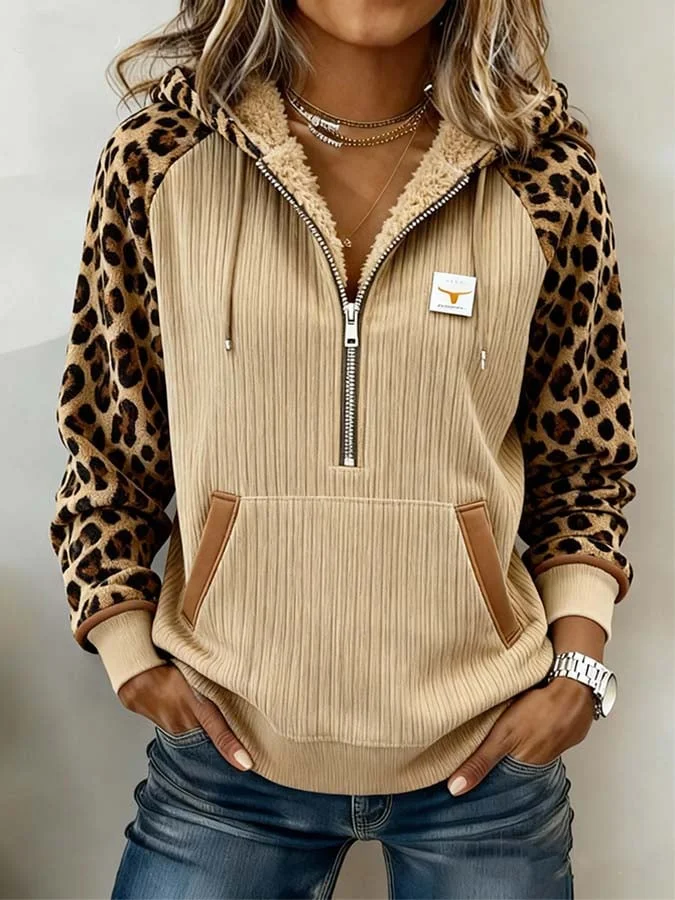 Women'S Casual Color Block Printed Hooded Sweatshirt